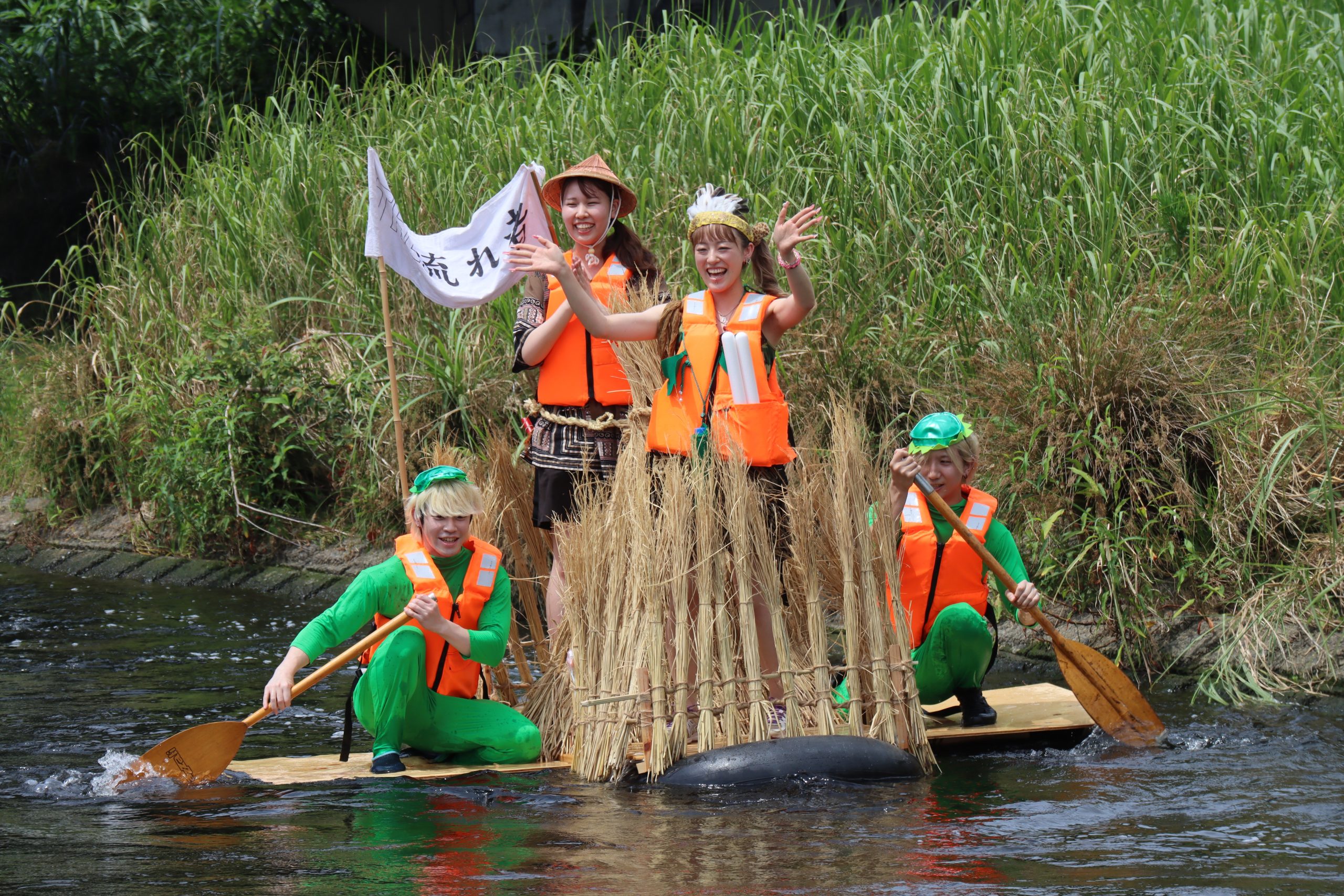 やなせ川いかだラリー いかだラリーを通じて、柳瀬川に親しみを持つだけでなく、学習を行い、河川の浄化や河川敷の環境改善などについて考え、実践する。(やなせ川いかだラリー実行委員会)